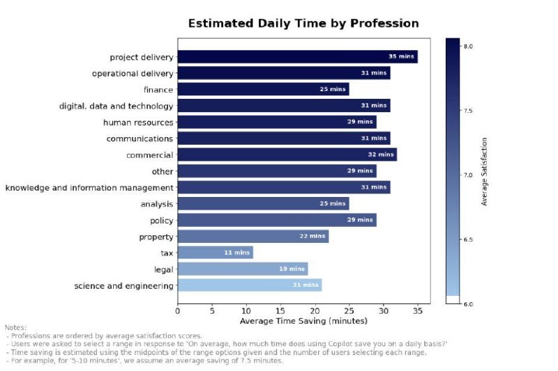 26 минут в день или 18 дней в год (!) экономит госслужащим ИИ, — самый масштабный эксперимент на 20'000 чиновников провели в Великобритании.