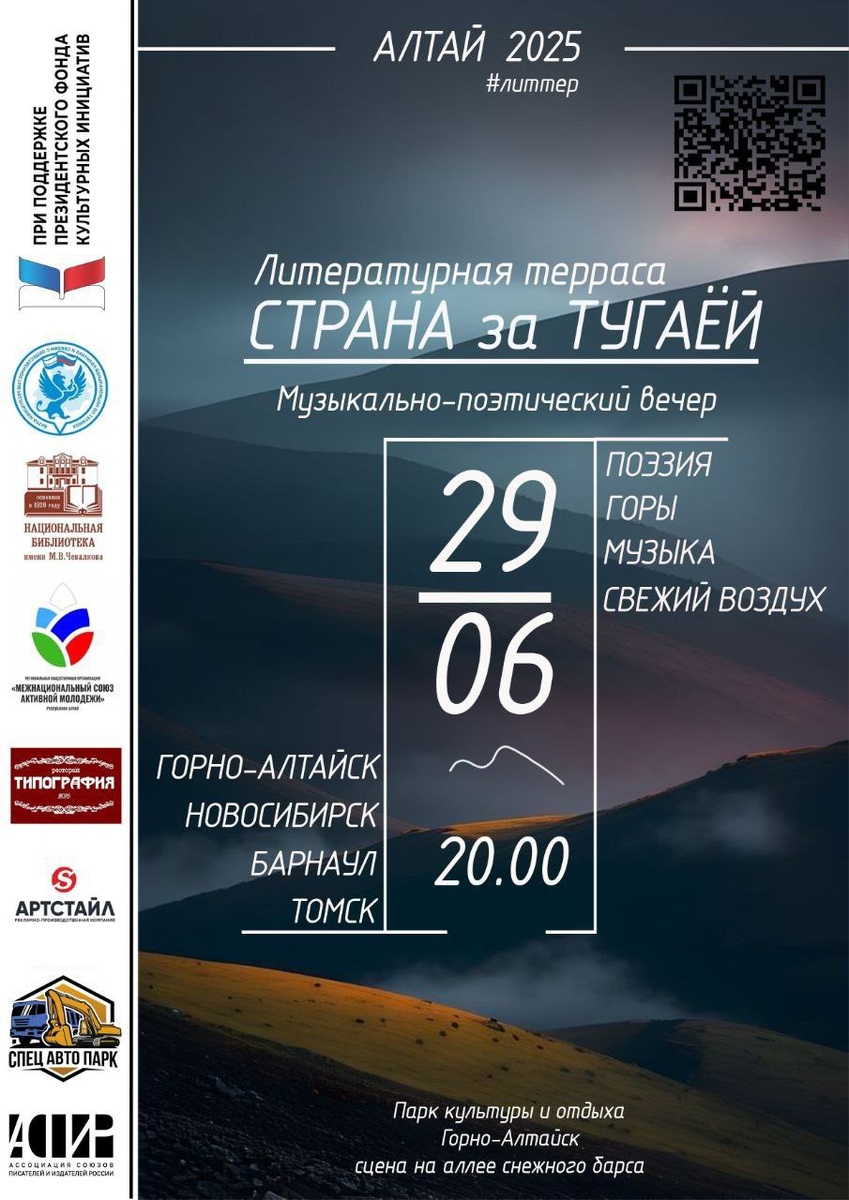 💥Стиходел Алексей Лучников приглашает всех-всех-всех на музыкально-поэтический вечер "Литературная терраса. Страна за Тугаей". ✨29 июня в 20.00 на сцене у аллеи снежного барса для вас будут звучать авторские стихи и песни. Подробнее о событии - на канале проекта.
