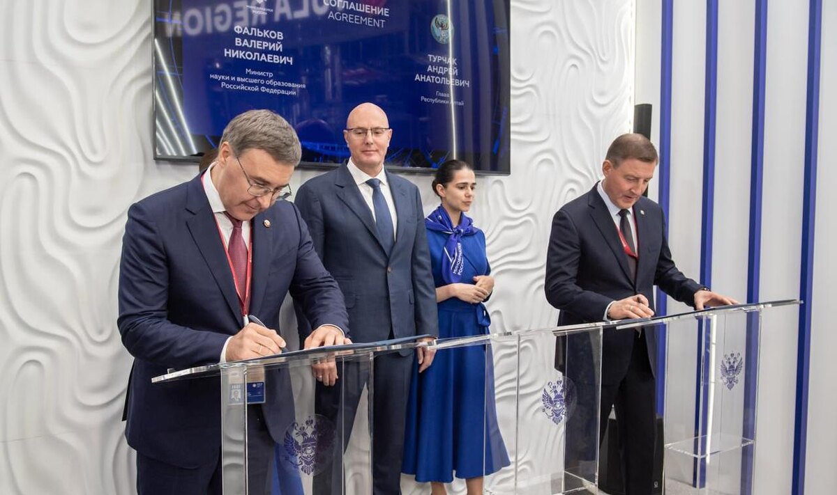 В сфере науки и высшего образования состоялось несколько важных соглашений, подписанных при участии высокопоставленных лиц. Первое направление сотрудничества связано с технологическим развитием России. Подписано трёхстороннее соглашение между Газпромбанком, «Центром технологического лидерства» и Минобрнауки. Газпромбанк будет поддерживать университетские проекты с научным потенциалом в рамках программ «Приоритет-2030», «Передовые инженерные школы» и федерального проекта «Технологии». Второе направление касается информационной поддержки науки. Заключено соглашение с телекомпанией НТВ и АНО «Национальные приоритеты» о повышении доступности информации о достижениях российской науки через просветительскую платформу «Мои университеты. Будущее за настоящим». Региональное сотрудничество закреплено соглашением с Правительством Республики Алтай. Цель — укрепление общероссийского образовательного пространства и содействие научно-технологическому развитию региона. Минобрнауки также заключило четы