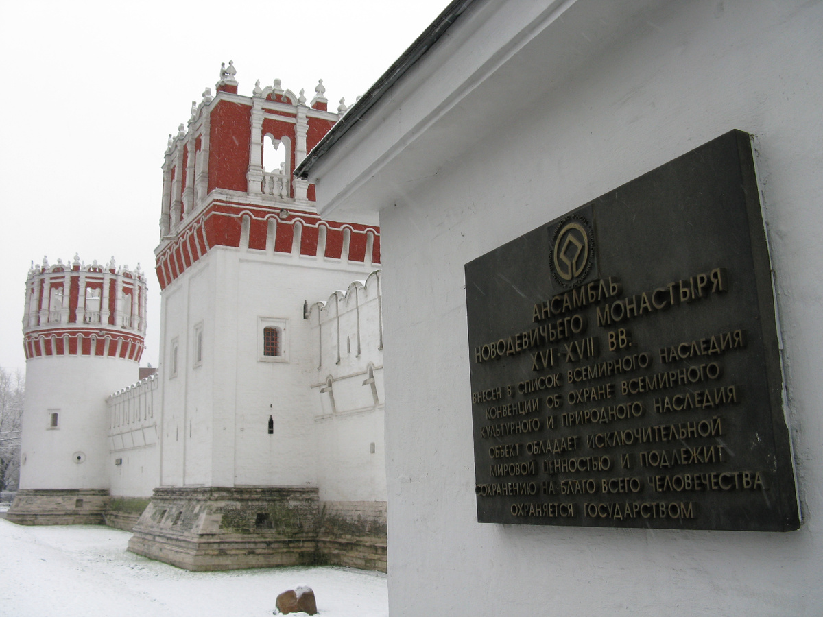 Новодевичий женский монастырь был заложен царем Василием III на месте, именовавшемся Девичье Поле, и предназначался для служения Богу постриженных. При Иване Грозном сюда были сосланы многие дамы двора, попавшие в немилость. В конце XVI века в этом храме был избран на царство Борис Годунов. В 1812 году Наполеон разместил там склады продовольствия, а уходя из Москвы, приказал взорвать монастырь. Но монахини спасли его от разрушения. Поскольку монастыри выполняли еще и функцию форпостов на подступах к Москве, Новодевичий строился как настоящая крепость: башни с зубцами, стены с бойницами. Внутри — Смоленский собор (XVI век), названный в честь чудотворной иконы, и погост с мрачной часовней в стиле модерн.