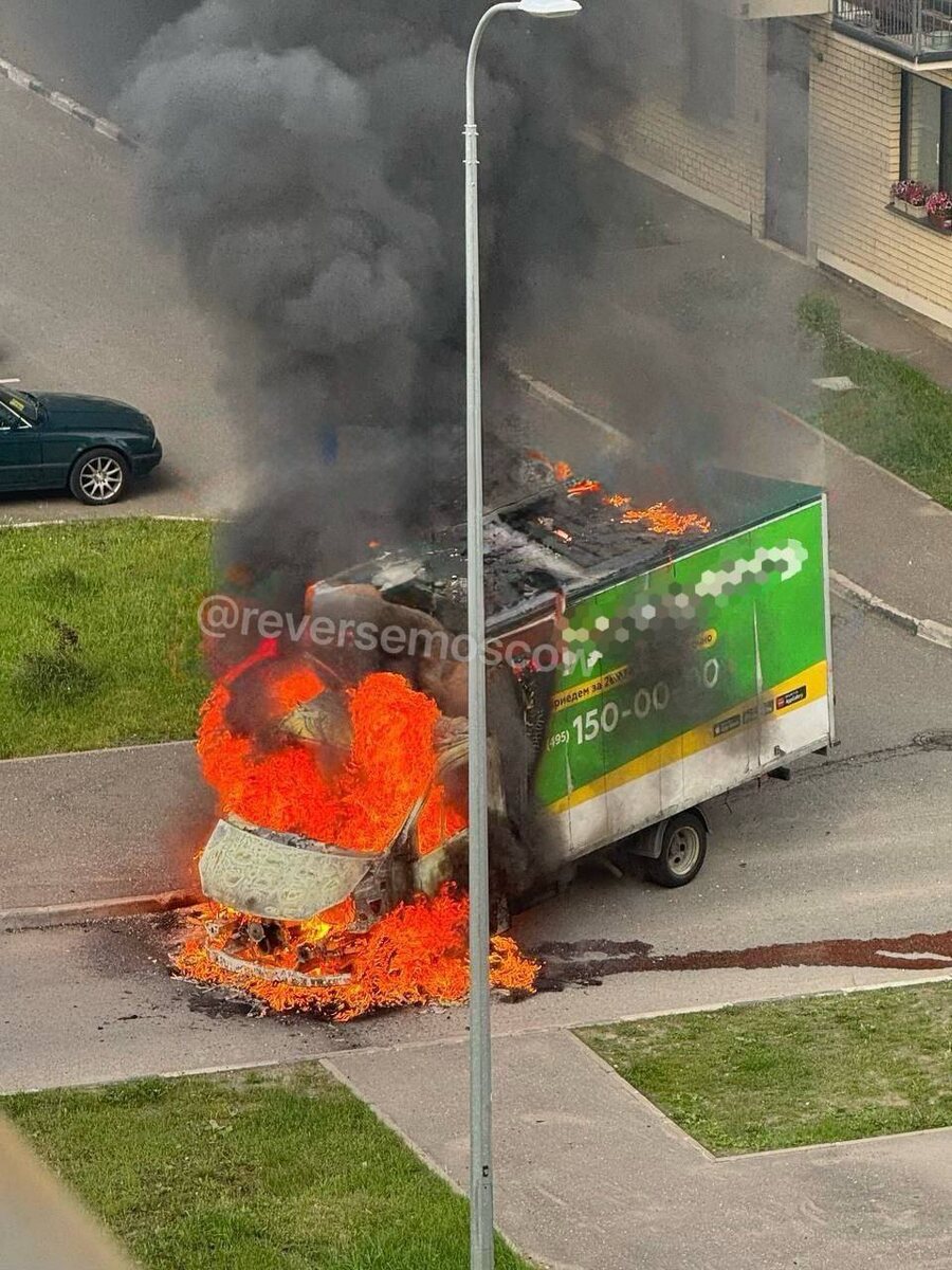 🚛 Рабочий день для водителя газельки в ЖК «Столичный» закончился, не успев начаться. Из-за неисправности автомобиль вспыхнул и выгорел буквально за три минуты. К счастью, водитель успел выбраться.