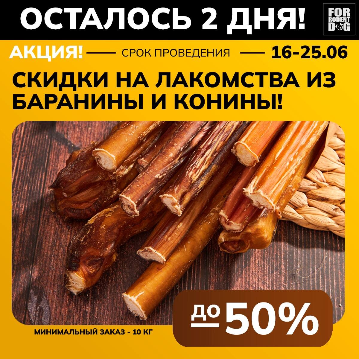🔔 ДО ОКОНЧАНИЯ АКЦИИ FOR RODENT DOG ОСТАЛОСЬ 2 ДНЯ Скидки до 50% на позиции из баранины и конины действуют только до 25 июня. FOR RODENT DOG — производитель натуральных сушеных лакомств для собак. Сырье с ферм Киргизии, без ароматизаторов и отбеливателей. • Посмотреть ассортимент можно тут. • Запросить прайс-лист sales@forrodentdog.ru 👉 Если планировали сделать заказ — сейчас самое время.