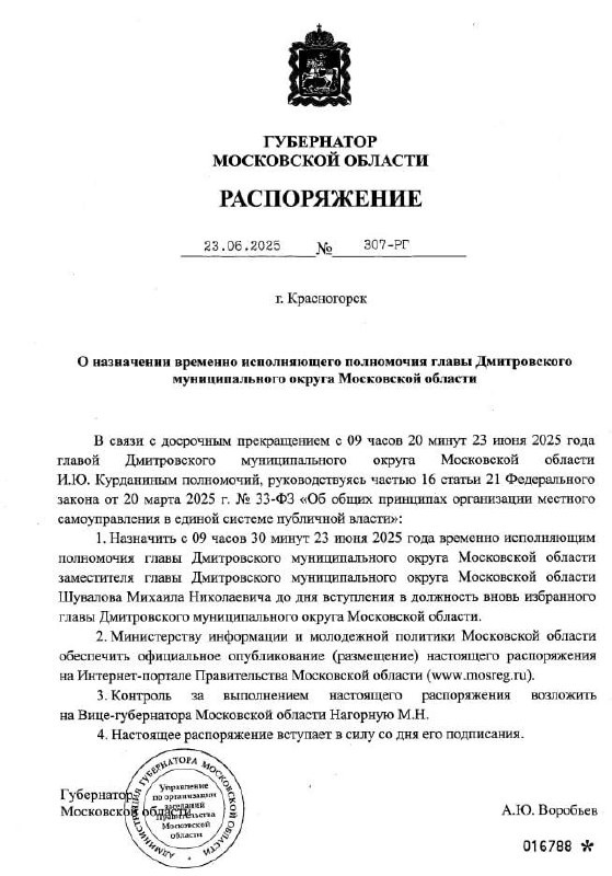 В ответ на пост 🔄Глава Дмитрова Курданин покинул пост. Округ по распоряжению губернатора возглавил Михаил Шувалов, экс-глава Каширы. В Кашире управление переходит к первому заму Евгению Тертышникову. Интересно здесь то, что раньше ВРИП главы назначали депутаты, которые собирались на экстренное заседание. А сегодня напрямую распоряжением АЮ. ⭐️ LPG 🚩Поддержите канал 📩Прислать новость / Реклама