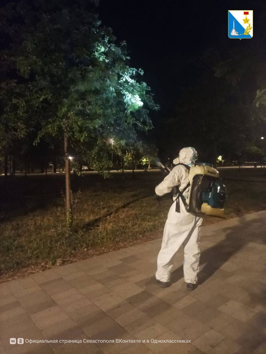 Защищаем от вредителей Специалисты ГБУ «Парки и скверы» по ночам обрабатывают деревья безопасным препаратом против белой бабочки. Ежедневно сотрудники осматривают территории, чтобы своевременно выявлять и устранять очаги заражения. Куда сообщить о зараженном дереве: - по телефону 112 - через мобильное приложение «Госуслуги. Решаем вместе» - по телефону +7 (8692) 77-75-47 - на почту: gbu-parki@sev.gov.ru или gbu_parki@mail.ru Правительство Севастополя