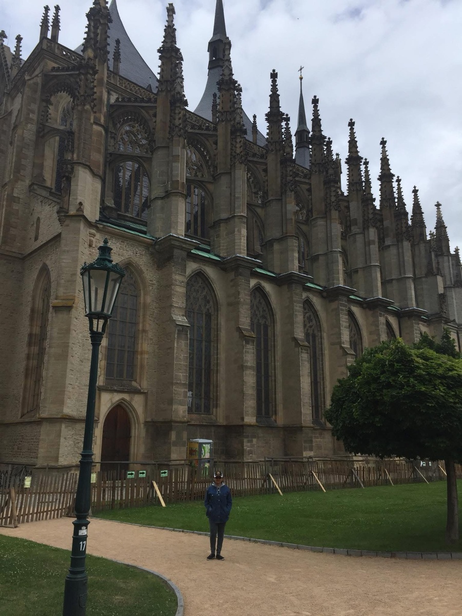 Во время моего путешествия по Чехии я заехала в городок Кутна Гора — небольшой, но невероятно атмосферный. Главной целью был Собор Святой Варвары, и он действительно оправдал все ожидания. Это настоящее готическое чудо: стройные башни, узорчатые окна, витражи, которые оживают на солнце. Архитектура завораживает — кажется, будто храм парит в воздухе. Гуляя рядом, я чувствовала, как меня охватывает покой и одновременно восхищение. Это не просто здание — это живая история, замершая в камне. Собор начали строить в XIV веке, когда Кутна Гора была одним из богатейших городов Европы — здесь добывали серебро. Он посвящён Святой Варваре, покровительнице шахтёров, и это чувствуется в деталях: внутри можно увидеть фрески с изображениями горняков, шахт и даже местных покровителей. Его необычная крыша с тремя шатровыми башнями напоминает парус, и даже если вы уже были в десятках соборов Европы — этот запомнится. Но в Кутной Горе есть и другая сторона — Костница, известная как «церковь из человеческ