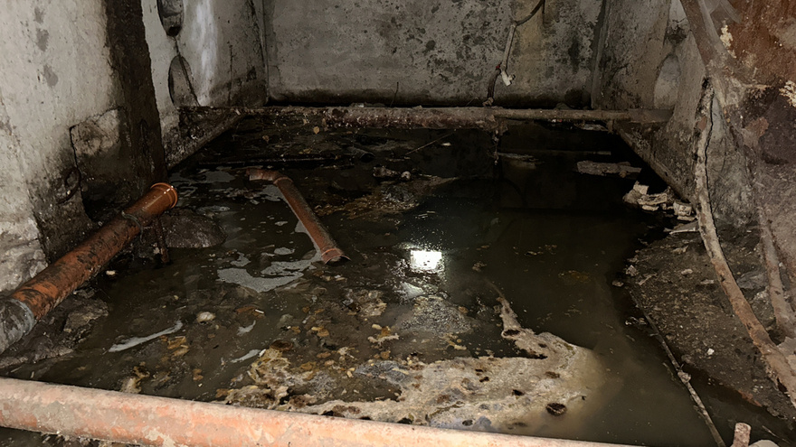 Примерно две недели назад в подвале развалилась канализационная труба. С тех пор нечистоты сливаются в подвал, в результате там образовалось болото, а подъезд наполнился зловонным испарением.