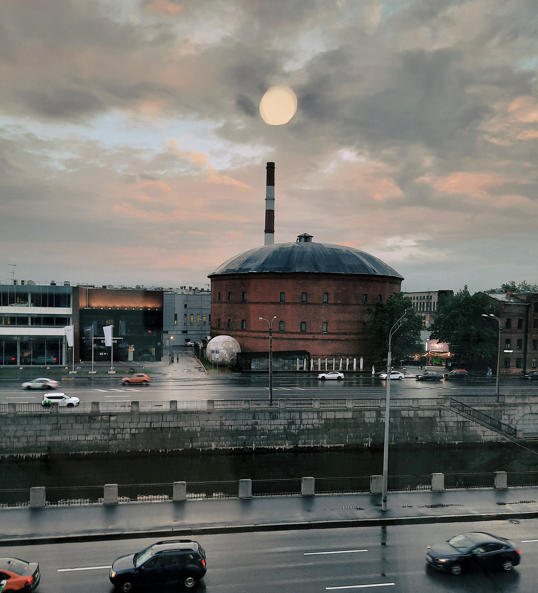 Сегодня я расскажу о планетарии 1, который находится на набережной Обводного канала в Санкт-Петербурге. Когда мы планировали отдых в городе на Неве, в программу развлечений посещение планетария не входило. Но так получилось, что жили в квартире, где этот самый планетарий смотрел на нас напротив в окно. Как не воспользоваться. Соседство получилось очень удачным. Здание планетария — бывший газгольдер, возведенный в 1884 году для газового завода Общества столичного освещения. Планетарий появился лишь в 2017-м. Перед строением установлен арт-объект Луна. Почти как настоящая, здорово сделана. Получаются довольно атмосферные и прикольные снимки. Территория внутреннего дворика тоже довольно приятная. Есть лавочки, много растений, приемущественно хвойные, по центру - огромный экран под открытым небом. При нас по нему крутили рекламу. Скорее всего, иногда вечерами здесь устраивают показы фильмов. Все располагает к этому. Люблю такие современные ухоженные места. Тут хорошо просто посидеть