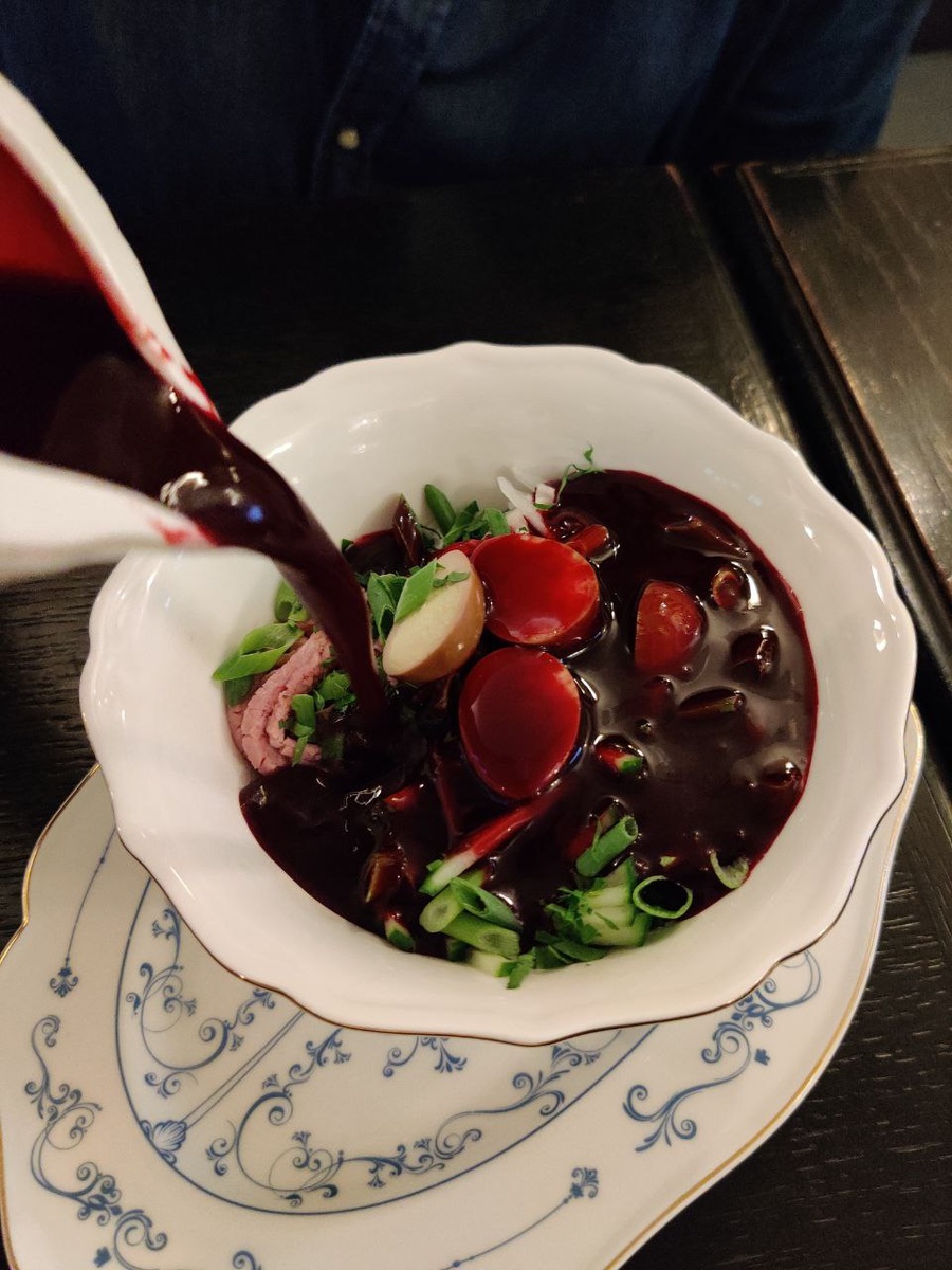 Паб Chelsea решил отличаться и летнее меню здесь дропнули так, что Британия в тарелке встречается с Азией, Средиземноморьем и даже Россией. Звучит неожиданно и смело, на деле выглядит гораздо более приземленно. Роти Рояль - чизбургер в роти - требует перчаток и сноровки, чтобы начинка попала в рот, а не попадала мимо. Севиче из осетра или палтуса (рыбу можно выбрать) плавает в лужице убедительного кислого соуса в компании сегментов сладких цитрусов. Красная икра тут что мертвому припарки, но выглядит красиво. К холоднику с копченым ростбифом и густым свекольным муссом полагается рюмка игристого вина и никакой сметаны - русская душа на такое предложение вроде как и отзывается, но не до конца. Кебаб из морепродуктов подают с роти и вместе со щупальцем осьминога с соусом блю чиз эта часть летнего меню вызывает меньше всего вопросов. @foodiscovery
