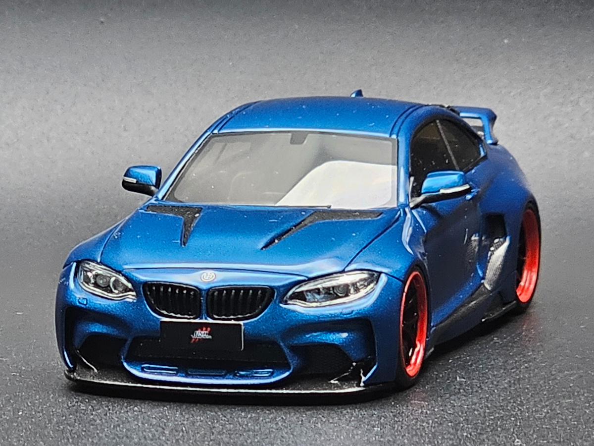 Сегодня речь пойдёт о модели тюнингованного автомобиля BMW 2 серии F22. Про исходный BMW 2 серии F22 можно посмотреть здесь - https://dzen.ru/a/aDLb_jIKDEGlN7L7?share_to=link BMW M235i MTC Design Black Sails DarwinPRO (2018). Информации о настоящем автомобиле почти нет, а вот о моделях в масштабе 1/43 и 1/18 много. Помните гоночную версию BMW Vision Gran Turismo на базе F22 M235i, представленную в 2014 году? Автомобиль был создан для компьютерной игры Gran Turismo 6 как более жесткая версия BMW M235i Racing и сразу же произвел впечатление. Знакомые детали, такие как решетка радиатора, фары, задние фонари и пропорции M235i, были объединены с окончательным комплектом широкого кузова и массивными спойлерами на виртуальном M235i, мощность которого была увеличена до 549 л. с. Автомобиль, который тюнинговали DarwinPro и MTC Design, по-видимому, не забыли и который теперь стал реальностью. Результатом стал BMW M2 BlackSails GT Widebody, который в настоящее время основан НЕ на M2, а на ст