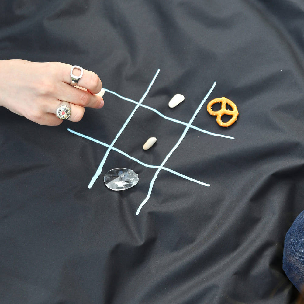 Изделия выполнены из водостойкой ткани — с учётом переменчивой петербургской погоды, а ещё дополнены принтом-сеткой для игры в крестики-нолики, чтобы не заскучать.