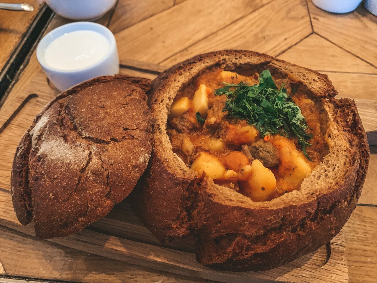 Гуляш в хлебе — необычное блюдо венгерской кухни. Секрет гуляша по-венгерски в хлебе в большом количестве специй, особенно паприки. Она придает блюду особый, очень насыщенный вкус и аромат. Гуляш в хлебе идеально подходит для обеда в холодное время года.
