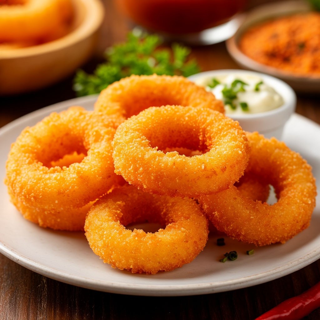 Кольца кальмара — это просто потрясающее и универсальное блюдо, которое можно подавать в самых разных вариантах: как закуску, основное блюдо или даже угощение на праздничном столе. Их хрустящая текстура и нежный вкус делают это блюдо популярным среди многих любителей хорошей еды. Давайте разберёмся как их приготовить. Ингредиенты: Для соуса: Приготовление: 1. Первым делом нужно очистить кальмары от внутренностей и кожицы. Хорошо промойте их, а потом нарежьте на широкие кольца. Замочите кольца в молоке хотя бы на час. 2. В глубокой миске смешайте муку с кукурузным крахмалом, копчёной паприкой, чесноком, солью и перцем. Эта смесь станет основой для хрустящей корочки. Обваляйте каждое кольцо кальмара в этой панировке, затем окуните в молоко, чтобы панировка лучше прилипла. После этого снова обваляйте в панировке. 3. Разогрейте духовку до 180 градусов. На противень, смазанный растительным маслом, выложите кольца кальмара. Чуть-чуть сбрызните их растительным маслом для хрустящей корочк