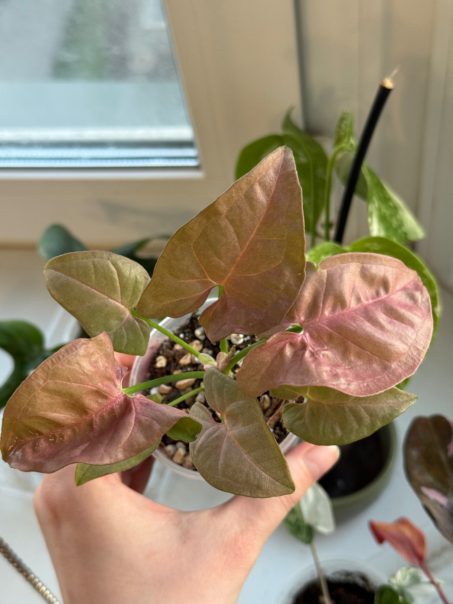Этот сорт сингониума с нежно-розовыми листьями с перламутровым отливом способны преобразить любой интерьер. Делюсь проверенными лайфхаками по уходу. Легкий, рыхлый, в меру питательный. Состав: Мягкий рассеянный свет: идеальное место восточное окно. Если света не будет хватать, листья начнут терять свою декоративность (розовый оттенок). После высыхания грунта на 80 %, чтоб избежать перелив. Вода должна быть комнатной температуры и отстоявшейся. Лечение: перерыв в подкормках на 1 месяц. Лечение: дополнительное освещение (фитолампы). P.S. Заходи в мой Telegram-канале «Зеленый круговорот». Подписывайтесь. 🌿 (ссылка в профиле)