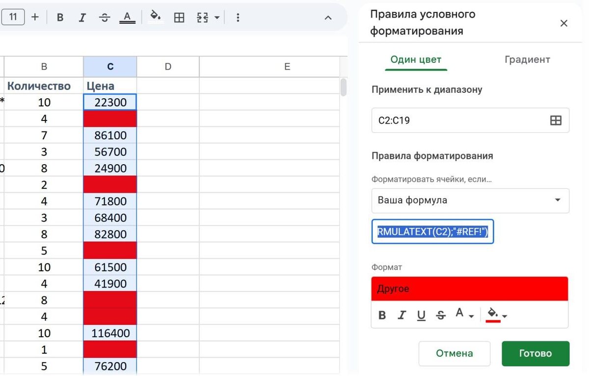 Выделяем формулы с ошибкой #REF! У вас гора формул. Надо выяснить, есть ли в ней формулы с ошибкой #REF! внутри (которая, например, возникает при удалении столбца или строки, на которые мы ссылались). Их может быть и не видно. Допустим, в формуле есть ЕСЛИОШИБКА / IFERROR — и возвращается не ошибка, а пустое значение. Выделяем пачку формул и создаем правило условного форматирования с формулой. Формула будет такой: =REGEXMATCH(FORMULATEXT(первая ячейка диапазона);"#REF!") Напоминаем, FORMULATEXT (для экселье с русским интерфейсом — Ф.ТЕКСТ) возвращает текст формулы. Ну а про ошибки в подробностях читайте в нашей большой статье — тыц 📗 Канал и Чат 📕 Оглавление канала 🏄 Заказ работы у нас