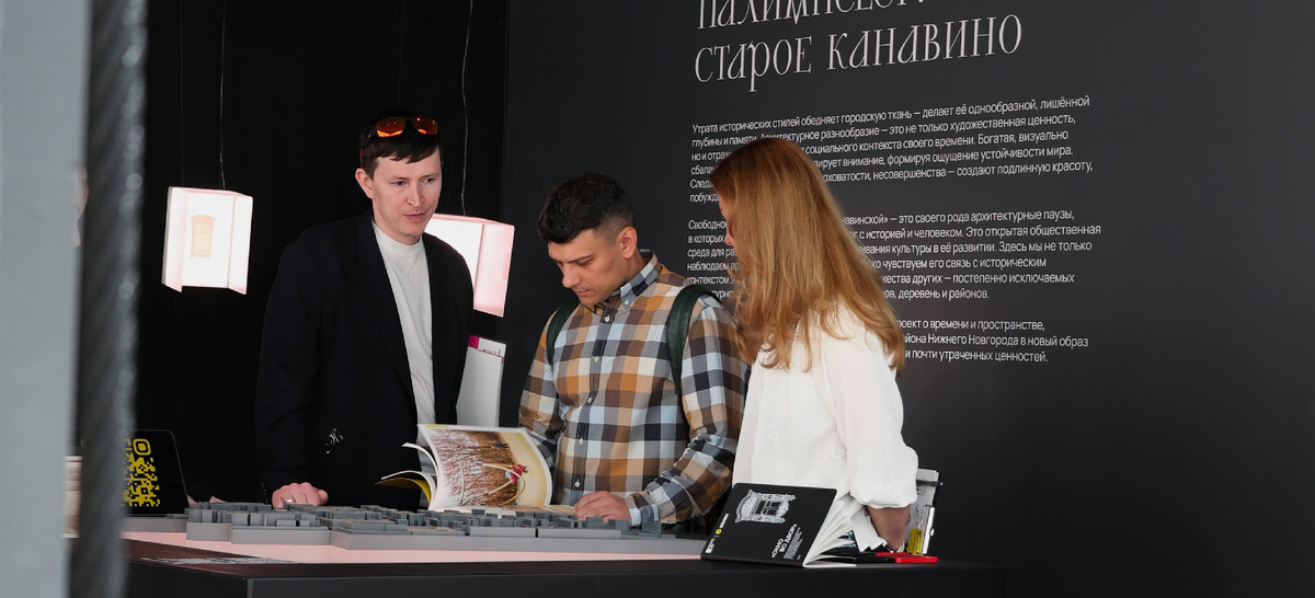 Наш стенд был посвящён историческому месту — Старому Канавино (Кунавино) — самой древней части территории Нижегородского района Канавино. Этот район до революции был независимой слободой, которая играла определяющую роль в культурной и экономической жизни Нижнего Новгорода на протяжении всего XIX века. Кунавинская слобода первоначально располагалась на левом, песчаном и отлогом берегу реки Оки, в низменной прибрежной местности, регулярно затапливаемой весенними разливами. Через этот район проходил важный торговый волжский путь, связывавший Северную Европу с Индией и Персией. Точная дата основания слободы неизвестна, однако известно, что она возникла из необходимости устройства постоянной переправы через Оку, появившейся практически сразу после основания Нижнего Новгорода в 1221 году. С тех пор веками через Кунавино обеспечивалась связь Новгорода с заречными селами. Подробнее с историей района можно ознакомиться в книге «Культурный палимпсест» Команда архитектурного Бюро А4 совместно с