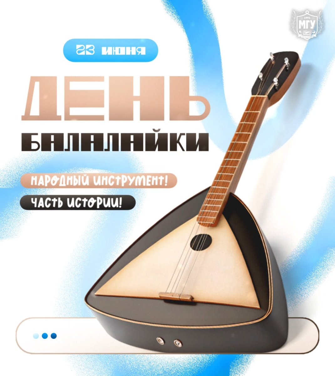 23 июня — День балалайки🎵 ♨️ Балалайка – это не просто инструмент, а часть нашей истории. Она появилась в XV веке и претерпела множество изменений, но всегда оставалась символом народной музыки. С ее помощью исполнители передают самые разнообразные эмоции: от радости до грусти. ✨ Этот музыкальный инструмент добавляет особый колорит в народные песни и игры. С ее нежными звуками оживают фольклорные произведения, а сердца людей наполняются теплотой и гармонией. ✍️ Войтенко Мария, 1 курс, ФФМК, Журналистика 🖼 Бессонова Ксения, 1 курс, ФФМК, Реклама и связи с общественностью #МедиацентрМГУимениКуинджи #ДеньБалалайки