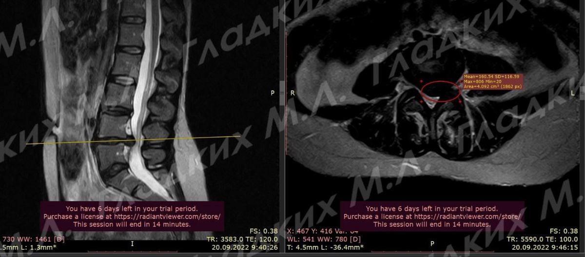 Ко мне на прием обратилась девушка 40 лет с очень сильной болью в левой ноге и пояснице (9 баллов из 10), было больно ходить и наклоняться. По МРТ была диагносци отрована грыжа в пояснице на уровне L4-L5 ( первое фото). Пациентку отправляли на операцию. Она, конечно не хотела и искала альтернативные методы лечения. Во время осмотра, помимо боли была выявлена слабость и онемение в левой стопе. Начали лечение: 🔻 лечебно-охранительный режим: исключить любые движения которые усиливают боль избегать скручивающих движений в пояснице ( обычно это происходит когда в положении лежа на спине человек тянется в сторону за телефоном или еще чем-нибудь), умеренная ходьба до появления боли так как за счет движения улучшается общий и местный кровоток, отдых в положении лежа на спине в том положении которое не вызывает боль. 🔻Процедуры: PRP и иглорефлексотерапия 🔻для снятия боли были назначены антиконвульсанты и нейрометаболические препараты ✅ Через 2 недели боль уменьшилась до 5-6 баллов,