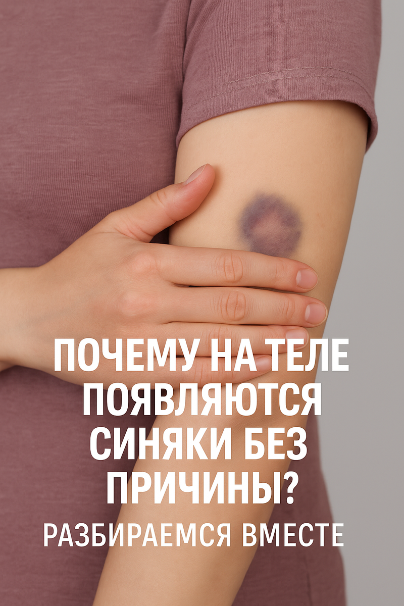 Иногда, проснувшись утром, мы замечаем на теле неожиданные синяки — будто их там никогда и не было. Особенно это тревожит, если таких пятнышек становится всё больше, а видимых причин, вроде ушиба или падения, нет. В этой статье я поделюсь наблюдениями и выводами о том, с чем может быть связано частое появление синяков, а также предложу простые советы по улучшению ситуации. 👇 Что такое синяк? 🟣 Синяк – это кровоизлияние в подкожные ткани. Он возникает, когда повреждаются мелкие кровеносные сосуды (капилляры), и кровь попадает в окружающие ткани. Обычно это результат травмы, но если синяки появляются спонтанно или от легкого нажатия, это может быть сигналом к дальнейшему обследованию. Возможные причины частых синяков 🚨 1. Дефицит витаминов 🥦🍊 👉 Если рацион питания ограничен или не сбалансирован, такие дефициты могут привести к появлению синяков. 2. Хрупкость сосудистой стенки 🧬 У некоторых людей сосуды по природе тонкие и уязвимые. Это не болезнь, но повод беречь себя: сб