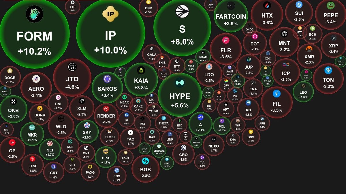 📊 Ежедневный обзор рынка криптовалют от Coinbubbles.ru 🗓 23.06.2025 11:07 по Москве. 🔗 Посмотреть на сайте 📈 Лидеры роста (из ТОП-100): 🟢 Four (FORM): $2.5737 (+10.2%) 🟢 Story (IP): $3.0371 (+10%) 🟢 Sonic (prev. FTM) (S): $0.2822 (+8%) 📉 Лидеры падения (из ТОП-100): 🔴 Jito (JTO): $1.9953 (-4.7%) 🔴 HTX DAO (HTX): $0.0000 (-3.6%) 🔴 Filecoin (FIL): $2.1084 (-3.6%) 🔍 Основные метрики: 🔴 Общая капитализация: $3123.99 млрд (-0.62%) 🟢 Общий объем торгов: $138.86 млрд (+25.65%) 🟢 Доминация Bitcoin: 64.90% (+0.04%) 🔴 Доминация Ethereum: 8.74% (-0.00%) 🟢 Индекс страха и жадности: 47 / 100: СТРАХ (+5) 🔴 Индекс Альтсезона: 14 / 100: БИТКОИН-СЕЗОН (-5) 📖 Интересные статьи: 👉 Все способы купить USDT за рубли в России 2025. 👉 Фьючерсы на криптовалюты в 2025 году: Полное руководство для начинающих. 👉 Майнинг на GPU видеокартах - подробное руководство для новичков.