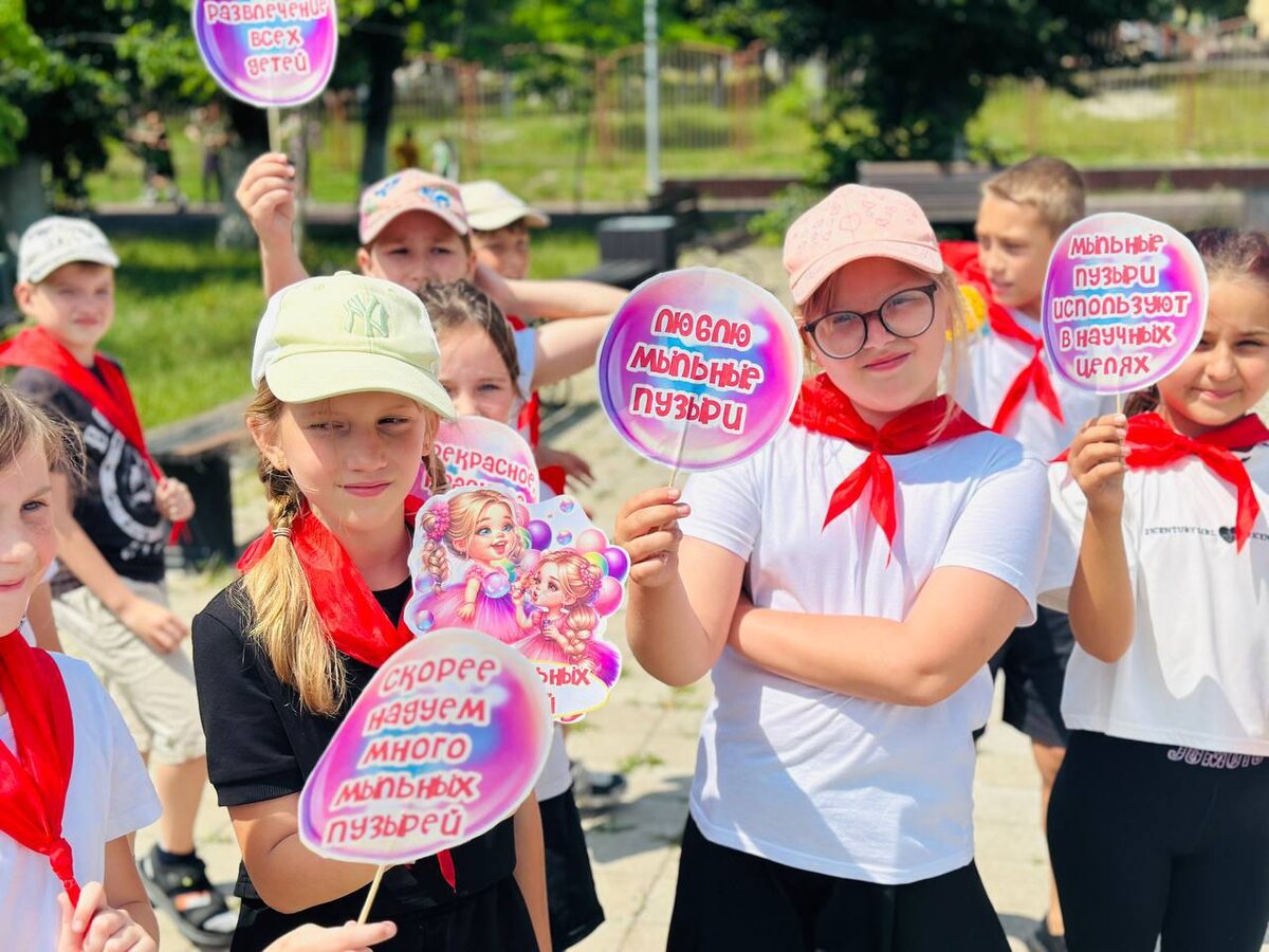 В солнечный день воспитатели 9 отряда организовали уникальную и веселую активность — День мыльных пузырей. Это мероприятие собрало детей, которые с радостью погрузились в атмосферу творчества и веселья.
