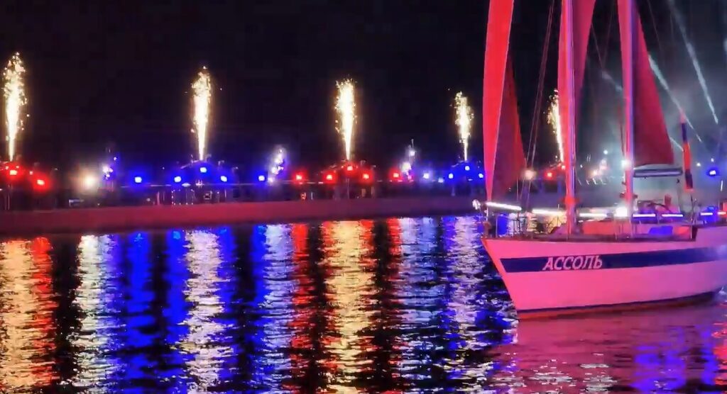 Ежегодный праздник выпускников «Алые паруса» прошел в Мариуполе в субботу. Жители города встречают в бухте яхту «Ассоль», а также смотрят концерт на набережной. «В этом году у нас 827 выпускников 11 классов, из них 520 выпускников уехали в Санкт-Петербург и сегодня, вот сейчас в это время, они празднуют «Алые паруса» в Санкт-Петербурге на берегах Невы. А оставшиеся выпускники сегодня здесь, на этой замечательной набережной, у нас здесь в городе. Поэтому хорошая погода, хорошее настроение, все празднуют», — сообщил врио главы Мариуполя Антон Кольцов. Мероприятие организовано под эгидой Северной столицы. Города подписали договор об установлении побратимских связей 1 июня 2022 года. Праздник выпускников «Алые паруса» ежегодно проводится в Санкт-Петербурге. Впервые культурное событие прошло в июне 1968 года. Впоследствии традиция прервалась на 25 лет, но была возобновлена в 2005 году.