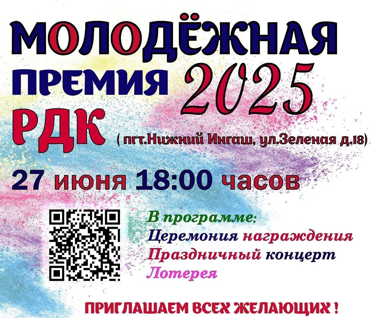 27 июня в 18:00 в районном Доме культуры (пгт Нижний Ингаш, ул. Зелёная, д. 18) состоится торжественное вручение Молодёжной премии Главы района!