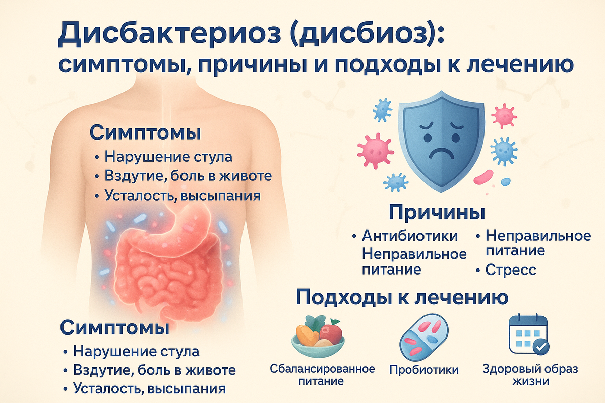 Дисбактериоз (дисбиоз): симптомы, причины и подходы к лечению