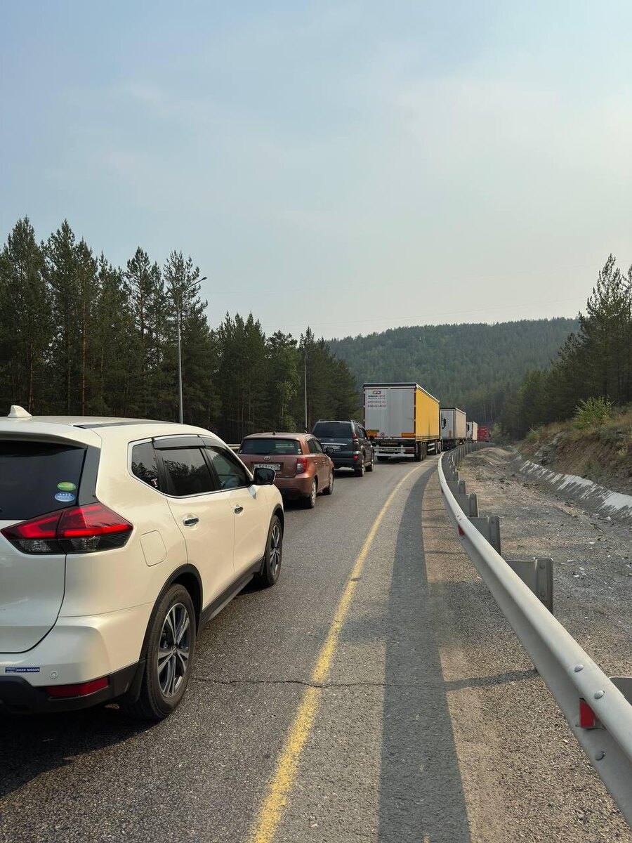 В ответ на пост Перед постом ГАИ образовалась большая пробка. Движение сильно затруднено: Перед подъёмом к посту встали. Дальше — пробка, скорее всего, тянется через всю Атамановку. За мной уже скапливаются машины. Те, кто ехал в маршрутке, вышли и пошли пешком по трассе. Стою уже минут десять — движения вообще нет. Когда ехали, было видно сильный дым от пожаров. 🟦 Подписаться | Предложить новость