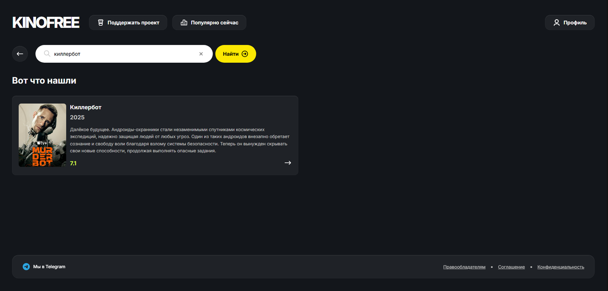 KinoFree: Поисковик бесплатного пиратского онлайн-контента с фильмами и сериалами