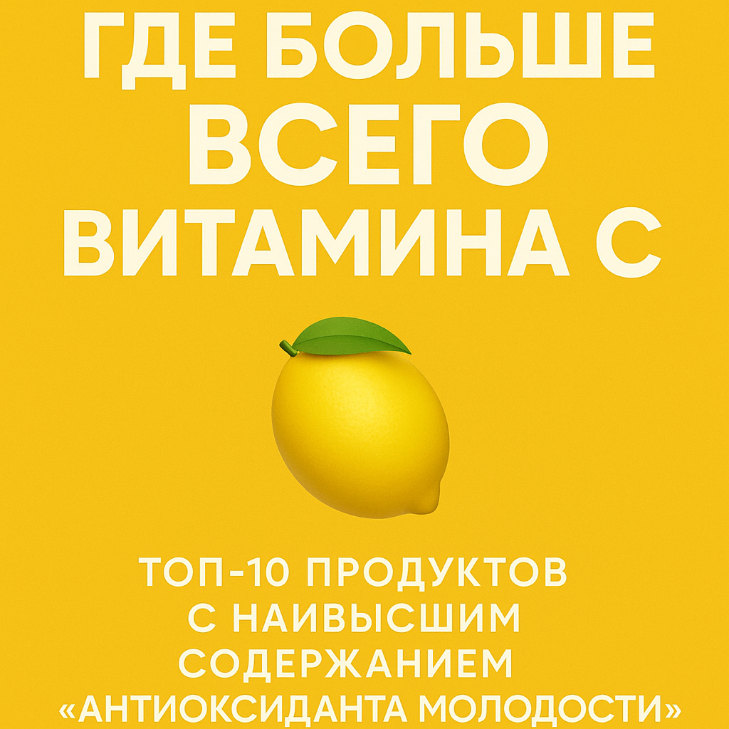 ТОП-10 продуктов с наивысшим содержанием “антиоксиданта молодости” Когда слышим о витамине С, сразу представляем лимон, верно? 🍋 На самом деле, он далеко не чемпион по содержанию этого важного вещества. А ведь витамин С — один из ключевых витаминов для иммунитета 🛡, здоровья сосудов 🩸, сияющей кожи ✨ и даже устойчивости к стрессу. В этой статье я собрала для тебя продукты, где действительно много витамина С — на 100 грамм. Запоминай, сохраняй и дополняй свой рацион 💪 Зачем нам витамин С? 🤓 👉 А еще витамин С не накапливается в организме, поэтому важно получать его каждый день с пищей. ТОП-10 продуктов, богатых витамином С 🥇 1. Шиповник (сушёный) 🌺 1200 мг на 100 г Абсолютный чемпион. Заваривай в термосе — получится витаминная бомба для иммунитета. 2. Красный болгарский перец 🫑 200–250 мг на 100 г Ешь сырым в салате или как хрустящую закуску — отличный вариант для перекуса. 3. Чёрная смородина 🫐 200 мг на 100 г В замороженном виде отлично сохраняет витамин. Добавляй в к