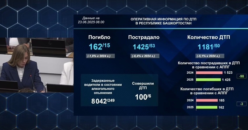 С 16 по 22 июня в республике произошло 50 ДТП. За неделю, с 16 по 22 июня, в Башкирии произошло 50 ДТП. В авариях пострадало 53 человека, 15 человек погибло, сообщила на оперативном совещании в ЦУР РБ министр транспорта и дорожного хозяйства Любовь Минакова. Видами смертельных ДТП стали: столкновение (9 погибших), съезд с дороги (3)наезд на пешехода (2 ), наезд на препятствие (1). С начала года в республике произошло 1181 ДТП, это на 63 меньше, чем за аналогичный период 2024 года. Пострадало в авариях 1425 человек (минус 98). Погибло 162 человека (минус 3). Напомним, неделю назад, 16 июня, в Башкирии в ДТП погиб известный мотогонщик Николай Красников. Фото: ЦУР РБ.