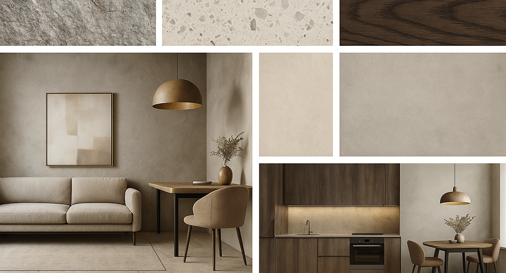 В интерьере это — грубая керамика, дерево с трещинкой, мягкий свет и фактурная ткань. Оба про спокойствие.