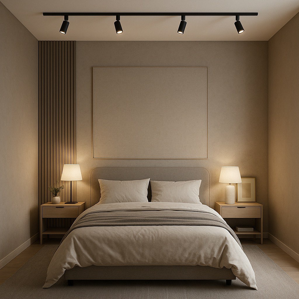 Трековое освещение уже давно вышло за пределы торговых залов и офисов, став стильным и функциональным элементом интерьера жилых помещений. Особенно интересно оно смотрится в спальне, где сочетаются уют, индивидуальность и необходимость зонирования. Ниже — пять продуманных схем размещения трековых светильников, которые помогут преобразить спальню и сделать освещение максимально удобным. Идея: один трек по центру потолка вдоль кровати. Преимущества: Когда использовать: в спальнях с нейтральным дизайном и отсутствием сложной планировки. Особенно хорошо работает в помещениях прямоугольной формы. Идея: три коротких трека, образующих треугольник — один у изголовья, два по бокам. Преимущества: Когда использовать: если спальня совмещена с гардеробной, рабочим местом или зоной для чтения. Идея: треки размещаются вдоль трех стен комнаты, образуя U-образную форму. Преимущества: Когда использовать: в просторных комнатах, где необходимо равномерное распределение света или визуальное расширение