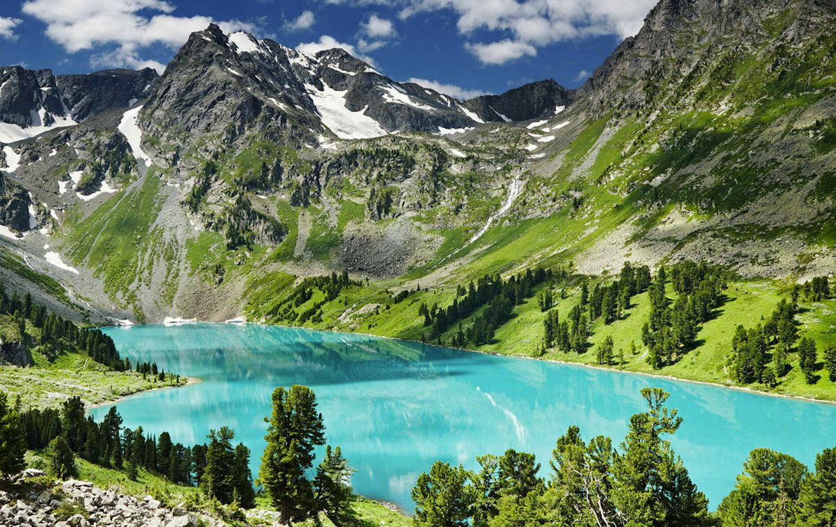 Зимой здесь работают горнолыжные курорты "Манжерок" и "Телецкий". Весной цветет маральник — это алтайская сакура.