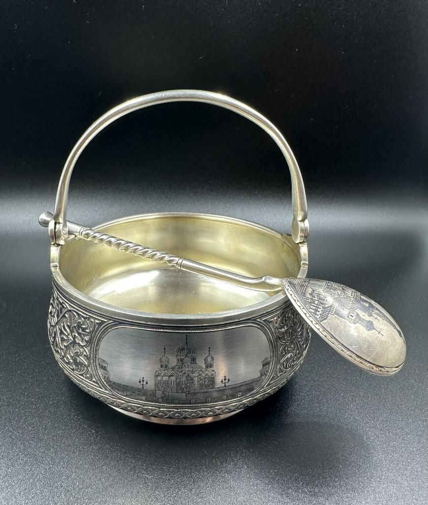Серебряная ваза чернь, Семенов. Россия, 1908 - 1917 гг Серебряная ваза с перекидной ручкой. Россия, 1908 - 1917 гг. Серебро, позолота, чернение. Российская Империя (Россия), г. Москва, мастерская Семенова Василия Семеновича. Длина - 12 см. Вес - 222 грамм серебра 84 золотниковой пробы (= 875 метрической пробе). Клеймо: "МС" - клеймо с инициалами Мария Семенова, одного из лучших мастеров, производивших изделия в подобной технике (чернение), владелец фабрики серебряных изделий Семенова Василия Семеновича, основанной в 1852 году. В начале 20 века дело продолжила его дочь Семенова Мария Васильевна. Семенов Василий Семенович и Семенова Мария Васильевна, 1908 Стоимость лота: 260 000,00 ₽ Подробнее на нашем сайте