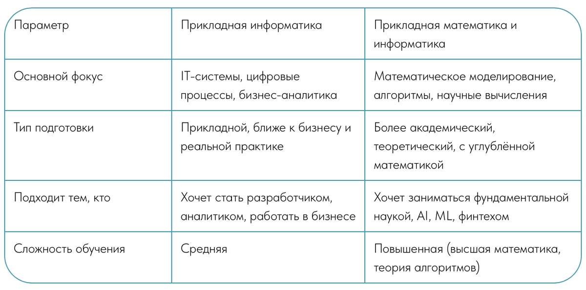 С первого взгляда — разница лишь в названии, но на деле программы сильно отличаются. Разбираемся, что ближе именно тебе, где легче учиться и какие перспективы ждут после выпуска. Прикладная информатика: Прикладная математика и информатика: После прикладной информатики: После прикладной математики и информатики: Сфера IT продолжает активно расти, а спрос на специалистов обеих программ — стабильно высокий. Выбирай прикладную информатику, если: Выбирай прикладную математику и информатику, если: 👉 Поступить на прикладную информатику или прикладную математику и информатику можно дистанционно, с получением государственного диплома.