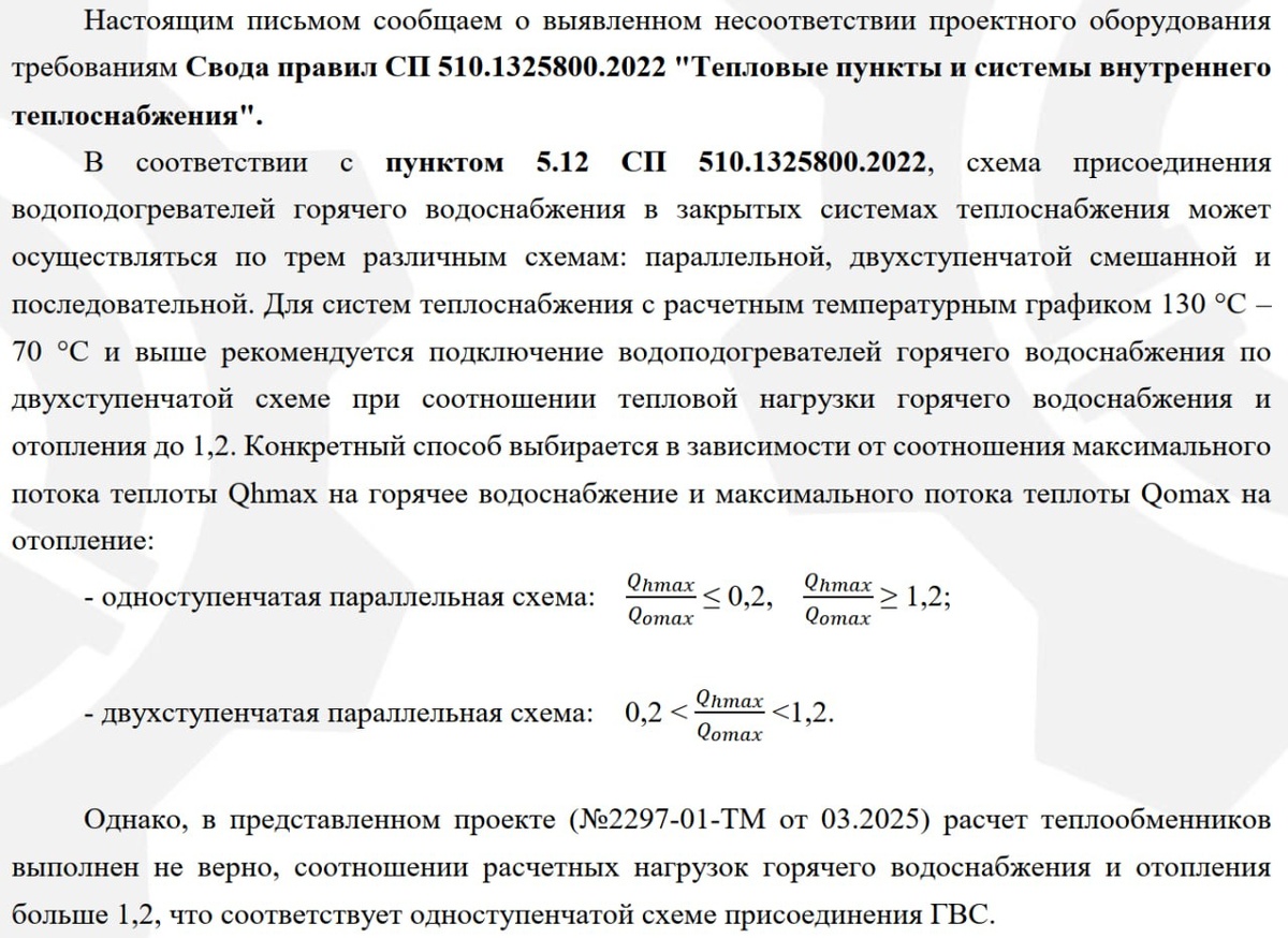 А я и не знал, что надо читать СП 🥹 ☺️ На прошлой неделе сдал проект в Благовещенске. Будет про него отдельный пост, так как объект получился весьмаааа интерееесный. ⛔️ Сегодня Заказчик прислал письмо от поставщиков и там написано, что я неправильно теплообменники подобрал. 😳 Пошел я, значит, искать пепел, чтобы посыпать голову, остатки волос искать, чтобы рвать на себе, а потом подумал, что не мог я так лохануться. Пепел в сторону, волосы пригладил, начал шерстить ИД, почему ж я сделал двухступенчатую ГВС, так как про несоответствие был у нас с Заказчиком разговор. И нашел 🤪 Пункт 4.2 ТУ гласит: Схема горячего водоснабжения предусмотреть закрытую. Выполнить установку пластинчатых подогревателей горячего водоснабжения 1-о1 и 2-о1 ступени по двухступенчатой смешанной схеме