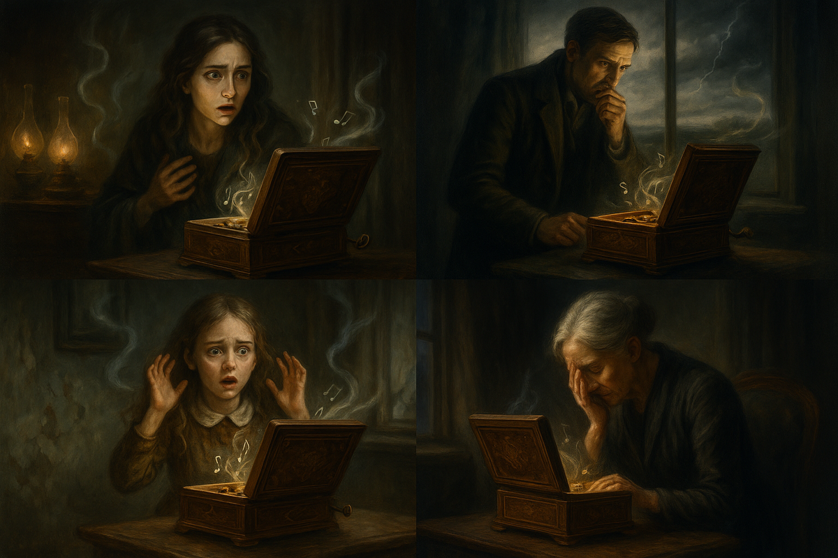 ΠΠΎ ΡΡΠ΅Π΄ΠΈ Π²ΡΠ΅Ρ ΡΡΠΈΡ ΡΠΎΠΊΡΠΎΠ²ΠΈΡ ΠΎΡΠΎΠ±Π΅Π½Π½ΠΎ Π²ΡΠ΄Π΅Π»ΡΠ»Π°ΡΡ ΠΎΠ΄Π½Π° β Π½Π΅Π±ΠΎΠ»ΡΡΠ°Ρ ΡΠΊΠ°ΡΡΠ»ΠΊΠ° ΠΈΠ· ΡΡΡΠ½ΠΎΠ³ΠΎ Π΄Π΅ΡΠ΅Π²Π° Ρ ΡΠ΅ΡΠ΅Π±ΡΡΠ½ΡΠΌΠΈ ΠΈΠ½ΠΊΡΡΡΡΠ°ΡΠΈΡΠΌΠΈ. ΠΠΎΠ³Π΄Π° ΠΠ°Π»Π΅Π½ΡΠΈΠ½Π° ΠΠ΅ΡΡΠΎΠ²Π½Π° Π²ΠΏΠ΅ΡΠ²ΡΠ΅ ΠΎΡΠΊΡΡΠ»Π° Π΅Ρ ΠΊΡΡΡΠΊΡ, ΠΌΠ΅Π»ΠΎΠ΄ΠΈΡ, ΠΏΠΎΠ»ΠΈΠ²ΡΠ°ΡΡΡ ΠΈΠ· Π½Π΅Π΄Ρ ΠΌΠ΅Ρ Π°Π½ΠΈΠ·ΠΌΠ°, Π·Π°ΡΡΠ°Π²ΠΈΠ»Π° Π΅Ρ ΡΠ΅ΡΠ΄ΡΠ΅ ΡΠΆΠ°ΡΡΡΡ ΠΎΡ Π½Π΅ΠΎΠ±ΡΡΡΠ½ΠΈΠΌΠΎΠΉ ΡΡΠ΅Π²ΠΎΠ³ΠΈ. ΠΠ΅Π»ΠΎΠ΄ΠΈΡ Π±ΡΠ»Π° Π·Π½Π°ΠΊΠΎΠΌΠΎΠΉ, Π½ΠΎ Π²ΠΌΠ΅ΡΡΠ΅ Ρ ΡΠ΅ΠΌ ΡΡΠΆΠΎΠΉ, ΡΠ»ΠΎΠ²Π½ΠΎ Π²ΠΎΡΠΏΠΎΠΌΠΈΠ½Π°Π½ΠΈΠ΅ ΠΎ ΡΠ½Π΅, ΠΊΠΎΡΠΎΡΡΠΉ Π½ΠΈΠΊΠΎΠ³Π΄Π° Π½Π΅ ΡΠ½ΠΈΠ»ΡΡ.
