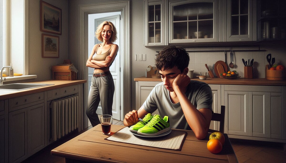 Боря опешил. Он ожидал борща, котлет, в крайнем случае - макарон с сосисками. Но кроссовки? Серьезно?