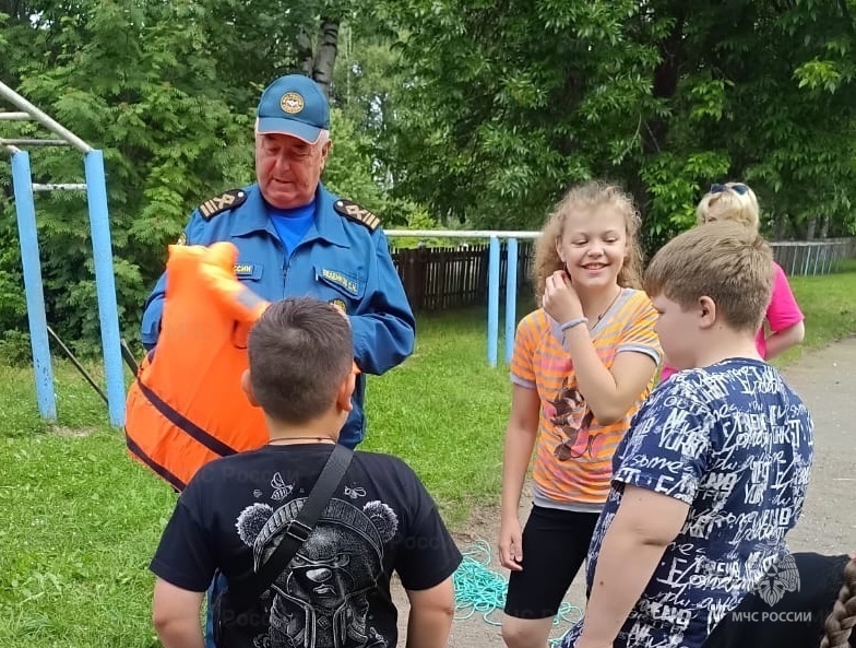 Мальчишкам и девчонкам рассказали, как вести себя у водоемов, как оказать помощь тонущему человеку и надевать спасательный жилет.