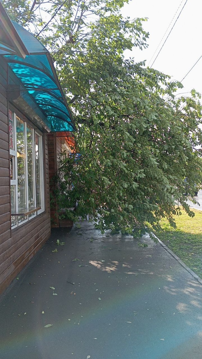 ☂ В результате непогоды упало дерево на торговые павильоны возле магазина «Эдем»🌳 Фото О.Кудрявцева