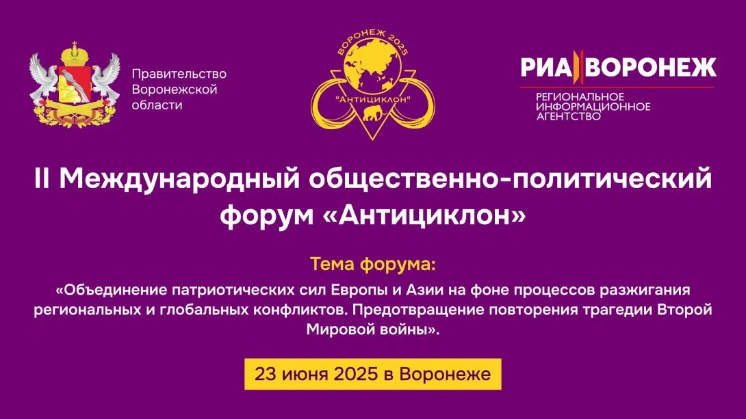 23 июня в Воронеже начал работу II Международный общественно-политический форум «Антициклон-2025». Перед основными мероприятиями участники познакомились с достопримечательностями региона и приняли участие в церемонии возложения цветов в День памяти и скорби. Своими впечатлениями уже поделились Заруи Бабуханян, начальник отдела по международным отношениям армянского медиахолдинга «Иравунк», и Эльвира Сатыбекова, главный редактор киргизского издания reporter.kg. Первые гости форума — политолог Рональд Шварцер и журналист Патрик Поппель — прибыли в Воронеж ещё 19 июня. Они провели пресс-конференцию, где ответили на вопросы представителей СМИ.Мероприятие проходит в отеле «Марриотт». Участники обсуждают способы противодействия информационным провокациям, способным спровоцировать международные конфликты. На открытии форума с приветственным словом выступил губернатор Воронежской области Александр Гусев. Он подчеркнул важность проведения таких мероприятий в регионе и пожелал участникам плодотв