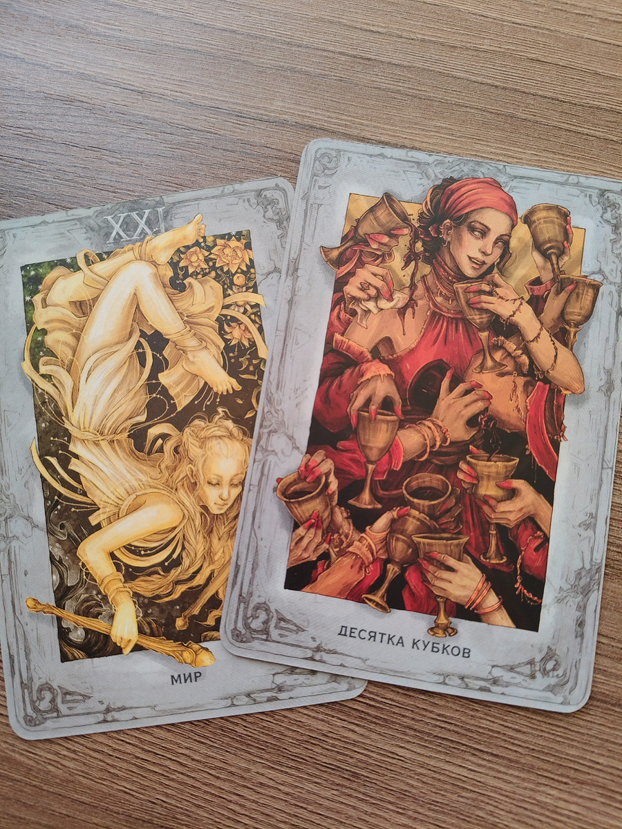 Гармония и Завершение в Сферах Жизни Сочетание старшего аркана Мир и Десятки Кубков в Таро – мощный символ завершения цикла и наступления периода гармонии и удовлетворения. Эта комбинация карт обещает позитивные перемены и радость во всех сферах жизни, но важно понимать нюансы, чтобы максимально использовать потенциал этих энергий. Работа: В профессиональной сфере сочетание Мира и Десятки Кубков предвещает успешное завершение проектов и достижение поставленных целей. Это время, когда усилия, приложенные ранее, приносят свои плоды, и вы чувствуете удовлетворение от проделанной работы. Возможно, вы получите признание и поддержку от коллег. Минус: существует риск самоуспокоения и потери мотивации к дальнейшему развитию. Финансы: В финансовом плане комбинация карт указывает на стабильность и процветание. Возможно получение прибыли от ранее сделанных инвестиций или успешное завершение финансовых сделок. Это благоприятное время для планирования бюджета и создания финансовой подушки безопас