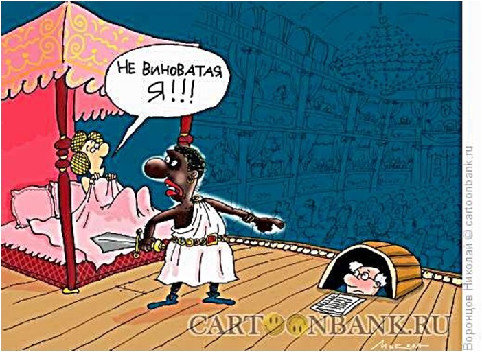 Николай Воронцов придумал оригинальную сценку по мотивам Шекспировского "Отелло". И Дездемона произносит ту самую фразу из кинокомедии. Что ж, суфлёр и правда сам пришёл...