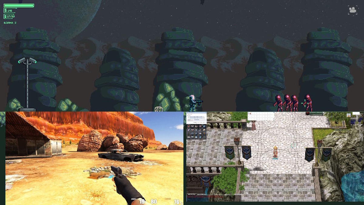 Все! Финальный пост про 2024 год на этом компе. Атлас мой классный лунный комп. Атлас что-то фантастическое и фэнтези такое. Буквально чуть-чуть играл уже в эти игры. И просто хотел их отметить. Опять же, категория для них - приз зрительских симпатий. Приз геймерского интереса. Финализируем 2024 год этим летом 2025 года! Пиксельный Гладиатор (Pixel Gladiator). Пиксельный двухмерный боевик. Про инопланетян и постройку базы. Я продолжил еще рубиться уже в следующем году. Короче, строишь базу. Стены и пулеметы там ставишь. Покупаешь оружие еще своему персонажу. И там улучшения как ракетные ботинки чтобы летать. Там новый бластер себе. И еще сам бегаешь. Арена такая. Их несколько видов. Я на первой играл. И с разных сторон идут какие-то пришельцы. Как монстры. Игрушка такая, да, небольшая – но очень прикольно сделанная. Графика симпатичная. В стиле Сеги 16 бит. И играется прикольно. Action Alien Survivor. Не знаю, как переводится. Но, тоже, игрушка по типа боевика такого категории Б. Трехм