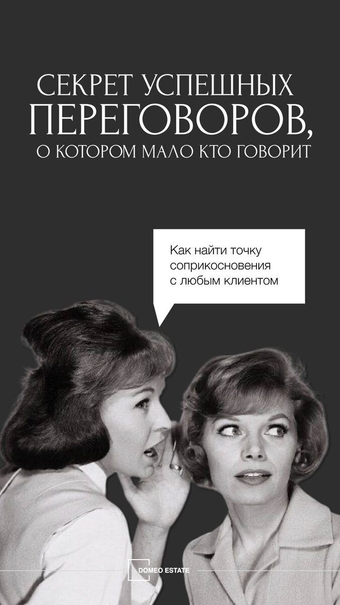 И что вы думаете? Когда они перешли к обсуждению недвижимости, это был уже совершенно другой разговор: открытый, доверительный, с готовностью слушать аргументы.