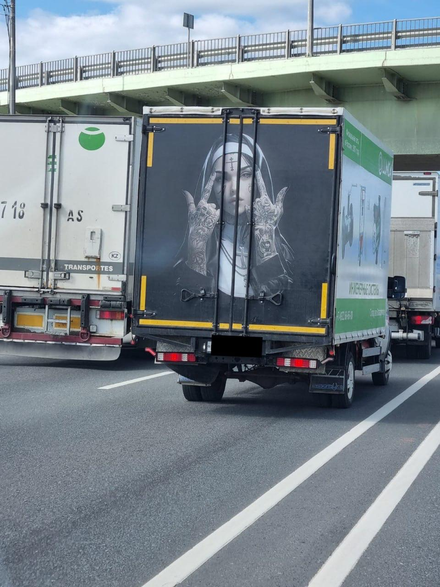 На трассе Москва — Ярославль разгорелся необычный конфликт вокруг «ГАЗели» с провокационным рисунком. На кузове машины красовалось граффити с изображением монахини, покрытой татуировками. Субботний день на трассе Москва–Ярославль казался обычным. Машины сновали туда-сюда, водители спешили по делам. Но одна "Газель" привлекла внимание не только водителей, но и православных активистов. На борту грузовика красовалось необычное граффити: девушка в монашеском одеянии, вся покрытая татуировками. Для кого-то это мог быть просто яркий рисунок, но для верующих — это был оскорбительным. Батюшка, проезжавший мимо, не поверил своим глазам. Он остановился, пригляделся и тут же достал телефон. — Это что же такое? Монахиня, а вся в татуировках! — возмутился он, набирая номер. — Надо срочно звонить ребятам из "Сорока сороков". Через короткое время на место прибыли активисты движения "Сорок сороков". Они быстро нашли грузовик, припаркованный у обочины, и окружили его. Водитель, мужчина средних лет, явн