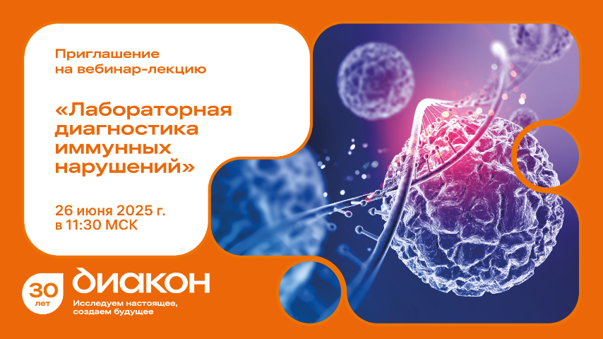 Приглашаем 26 июня на вебинар по теме "Современная лабораторная иммунология: прошлое, настоящее и будущее!" Начало в 11.30 МСК. Модератор: Суханова Ольга Валерьевна, к.б.н, старший медицинский советник АО «ДИАКОН». Спикер: Казаков Сергей Петрович, д.м.н., профессор кафедры клинической лабораторной диагностики, медицинской микробиологии и патологической анатомии Академии постдипломного образования ФГБУ ФНКЦ ФМБА, начальник центра клинической лабораторной диагностики – главный лаборант, Президент Российской ассоциации медицинской лабораторной диагностики (РАМЛД). Заслуженный работник здравоохранения РФ. Для кого предназначен Вебинар будет интересен широкому кругу врачей - не только специалистам клинической лабораторной диагностики, инфекционистам, онкологам и иммунологам, но и, вследствие мультидисциплинарности, врачам общей практики, которые занимаются первичной диагностикой и терапией основных иммунопатологических синдромов и сталкиваются в своей практике с хроническими и иммунокомпром