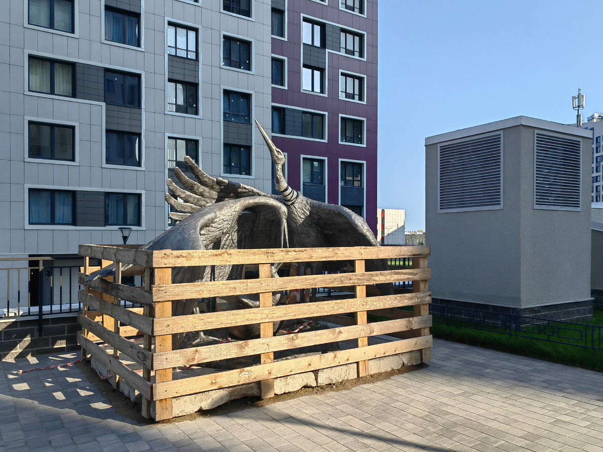Поискал автора работы, но на аистах не увидел ни одного клейма (обычно их ставят с задней стороне в районе основания памятника/арт-объекта), потому ничего конкретного про эту композицию сказать не могу.