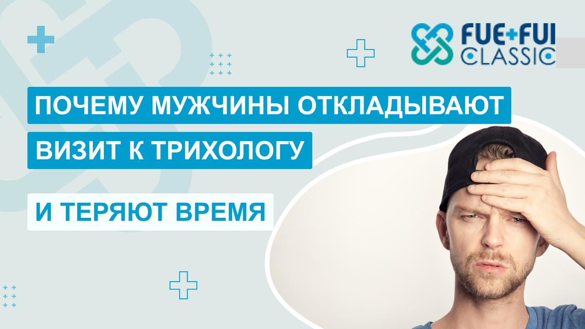 «Я не лысею, мне просто не хочется об этом думать» Выпадение волос у мужчин — одна из самых распространенных, но при этом самых замалчиваемых проблем. Согласно исследованиям, около 70% мужчин сталкиваются с заметным поредением или облысением к 35 годам, а у некоторых из них это начинается значительно раньше — уже в 20–25 лет. Несмотря на такие показатели, визит к врачу в первые месяцы проблемы — скорее исключение, чем правило. Многие предпочитают не замечать, что происходит, или объяснять изменения случайными причинами. Почему так происходит — и почему откладывание визита может стоить дорого? Когда мужчина замечает, что волосы стали тоньше, появляются залысины или увеличивается лобная зона, первое что они делают… ничего. Человек убеждает себя, что это временно: «поменял шампунь», «перенервничал», «у меня у деда так было, и ничего». Это вполне понятная реакция — отрицание помогает на время справиться с тревогой и сохранить чувство контроля. Проблема кажется незначительной, особенно если